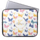 美しい名前をカスタムするラップトップスリーブとカラフル水色の蝶パターン。ラップトップスリーブの名前パーソナライズされたは、ピンク、薄紫、黄色と青のシームレスで繊細な蝶で。