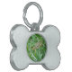 この素晴らしペットラベルは、草の上に座っている茶色の斑模様の小さな緑のバッタの詳細なマクロ写真を特徴とする。写真では、関節を持つ脚の詳細、長い触覚、黒い目やキリギリスの金ゴールドの目が見える。
