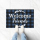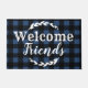 バッファロー素朴チェックプレイドウェルカムフレンズブルー ドアマット