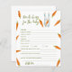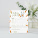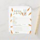 男女兼用ベビーシャワー招待状。ことわざ「小さなバニーが道に!」をフィーチャーした水色のバニー(ウサギ)とニンジンのイラストレーション、そしてオレンジ色のニンジンの多くの。一致する項目が使用可能。