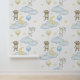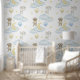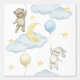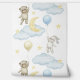 男の赤ちゃん子供部屋の月と星の雲を通して青と黄色の気球で空に浮かぶ水色のウサギとテディベア