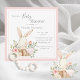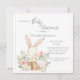 かわいい水色の手描きバニーウサギのバスケットの赤ちゃんシャワー招待。柔らシンプルかな色は甘いテーマのベビーシャワーのトーンを設定する。そんな特別なシンプルイベントへの誘い。