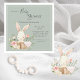 かわいい水色の手描きバニーウサギのバスケットの赤ちゃんシャワー招待。セージ緑の背景。柔らシンプルかな色は甘いテーマのベビーシャワーのトーンを設定する。そんな特別なシンプルイベントへの誘い。