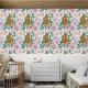 明るい青を背景に、ピンク色の花の中に座る可愛い茶色のウサギ