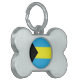 バハマ諸島国旗。アクアマリンと黄色のバンドを持つ黒い三角形。黒は強さを象徴する。アクアマリンは島々カリブのを取り囲む海のために、黄色はそのビーチの黄金の砂のために。