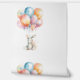 甘いベビーのベッドルームの壁紙は、白い背景で行われ、カラフルバルーンの花束の上に浮かんでいるバニー詰まったウサギの美しいアートワーク。素晴らし壁ま縁どたは壁の全体として使用