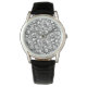 この男性時計は、デザイン全体の周りにモダン散在する同心円の半デザインを持っている。