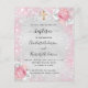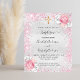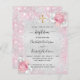 モダン洗礼エレガントの二祝人の赤ん坊の女の子、双子。銀のフェイクメタリック飾に見える背景とピンクのフェイクグリッターの輝き、金のクロスと花模様、花。名前と式の詳細をカスタマイズして追加黒い文字。