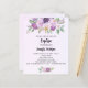 紫色のラベンダー色の水色の背景。紫飾と紫の水色の花と緑と金色の十字を持つ名前と披露宴・詳細のパーソナライズおよび追加1枚= 1枚の招待状を印刷したエッジからエッジ