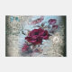 美しい、ヴィンテージ、赤いバラの花模様の新聞のプリントにフェイク、真珠のブローチとネックレス、ティール(緑がかった色)の弓とバーケージを使用して、ドアのための豪華で贅沢で、みすぼらしいシックなスタイルを作成スタイリッシュする。