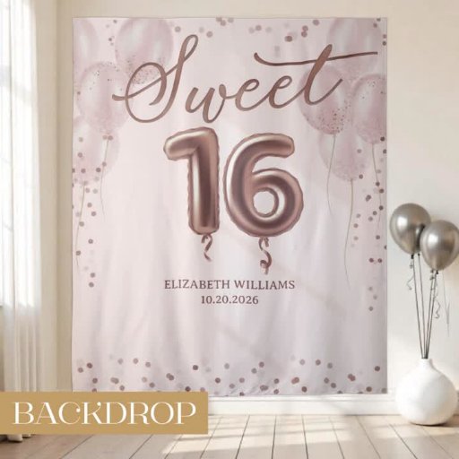 バラゴールドフォイルスウィート16誕生日バルーズピンク 招待状