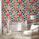 バラバドフローラプリントピーチシェードフラワーパターン 壁紙