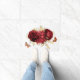 赤いエレガントバラと金ゴールドの緑と蝶。