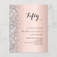 50エレガント歳(または任意の年齢)の誕生日パーティー。バラ金ゴールドの背景銀飾フェイクのグリッターで名前とパーティー・詳細のパーソナライズおよび追加1枚= 1枚の招待状を印刷したエッジからエッジ