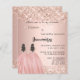 2015モダン歳の誕生日パスタイリッシューティー、双子のクインチェニェラスへの魅力的な招待。バラ金ゴールドの背景とフェイク金ゴールドグリッター、2人の女の子のガウンを着ている。名前は手書文字のスタイルスモダンクリプト付き。カスタマイズしてパーティー詳細を追加する。1枚= 1枚の招待状を印刷したエッジからエッジ