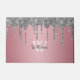 バラ金ゴールドピンクシルバーグリッタードリップスモノグラム名 ドアマット