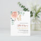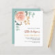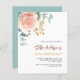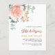 シックな白い背景。大きな飾バラ金ゴールドと赤面ピンクのフローラ、バラの花と緑の水色のユーカリ葉カリの、スリグ、緑と金ゴールドのスペリフェイクグがある。名前とパーティー・詳細のパーソナライズおよび追加背面:セージ緑の背景色。1枚= 1枚の招待状を印刷したエッジからエッジ