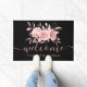 バラ金ゴールドブラックフローラウェルカムファミリ名 ドアマット