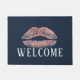 バラ金ゴールドリップメイクアップアーティスト美しいサロンネイビーブルーウェルカムドアマット。