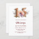 クイモダンンセースタイリッシュニェラへの魅力的な招待。白い背景飾、桃と紫の水色の花。名前は暗い書バラ金ゴールド色の手でスタイルスクリプトと一緒に。カスタマイズしてパーティー詳細を追加する。15番はバ書ロンスタイルフォント、スクリプト。1枚= 1枚の招待状を印刷したエッジからエッジ