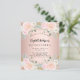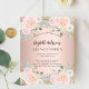 15モダン歳のスタイリッシュ誕生日パーティー、キンセアニラへの魅力的な招待。バラ金ゴールドの背景と赤面ピンクの花、バラ。名前は手書文字のスタイルスモダンクリプト付き。カスタマイズしてパーティー詳細を追加する。1枚= 1枚の招待状を印刷したエッジからエッジ