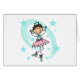 のピンクのblrownの髪の棒の姿のバレリーナおよび水のレオタードおよびチュチュカスタマイズ可能なTシャツ、ボディスーツ、マグ、磁石、トートバック、キーホルダー、カード、および多くの星および渦巻の水の背景。