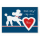 紙カスタムグリーティングカード、母のためのフロントバレンタインの日。白と赤いハートを保持し、ハート付きの赤い襟を着た白いシルエットのプードルのオリジナルイラストレーションを備えている。アート、イメージ、詩の著作権© Shoaff Ballanger Studios.
