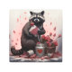 バレンタインデーのごみを持つアライグマ メタルプリント