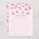 甘くてロマンチックなバレンタインテーマブライダル/ウェディングシャワーデート夜のアドバイスカードはピンクのハートの形のマカロンのイラストレーションをフィーチャー。シャワー頼中にカードを記入するゲスト。形見素晴らしだ!