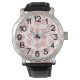この男性時計は、白いフィールドに散モダン散した赤いハート迷路の世紀中頃のバレンタインのデザインを持っている。