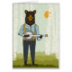 バンジョーを演奏する森のヒップスターくまの身に着けている衣服のイラストレーション。