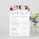 ゲストを見つける。質問に対する答えを見つけるために、ゲストと交流し、チャットする。このおもしろいとシャワーよくはしゃぐゲームカードをイベントに追加する。モモ、紫、バーガンディの花の水色フローラの花束に緑のアクセントを備えている。質問を追加してカスタマイズする。このフローラシャワー推測ゲームカードは、秋の赤ちゃんシャワーやブライダルシャワーに最適である。