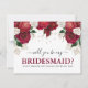 こ頼のブライダルパーティ提案カードを持つ君の妹、ベスティー結婚か、または必要だ。金ゴールドエレガントアクセントと書の台本フォントとキュラスな文字とブルゴーニュと白いバラの花模様を搭載。すべて提供されたカスタマイズテンプレートを使用できる。