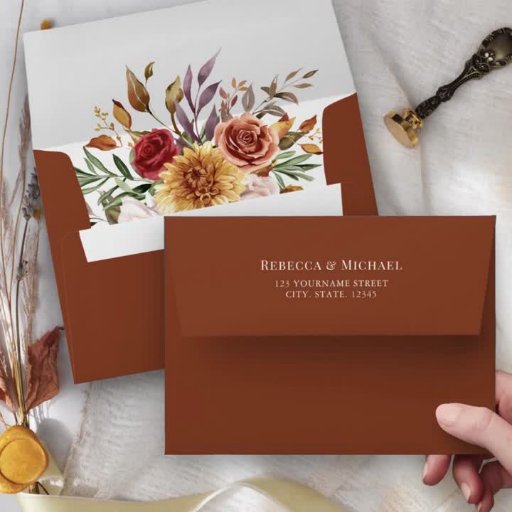バーグ素朴ンディ・テラコッタフローラQRコー結婚ド 招待状