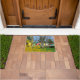 このフォーマットは、カラフルの太陽の下にバードハウスの列を表示春。黄色いレンギョウの茂み、木、青い空、緑の草がバードハウスの列をユニーク形成する。羽毛の付いた友人とその家への愛を示しなさい。