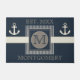 Burlap効果フェイク船の航海のいかりの大きなドアマストライプのットデザインは、あなたのイニシャル、家族の名前と確立された日付でパーソナライズする。