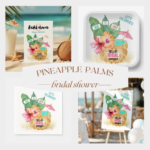 パイナップルパームトロピカルブライダルシャワー 招待状