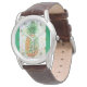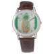 パイナップルライムトロピカルフルーツウォーターカラーアートグリーン 腕時計