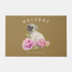 パグ犬の花柄の歓迎|は姓を加えます ドアマット