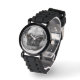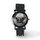 大きな光沢のある茶色の目とフロッピーの小さなビロードの耳を持つ非常に可愛いパグの子犬の白黒の写真。あなた素晴らしの人生の中で自分自身や駄洒落な恋人のためのギフト。最高の時計だ!
