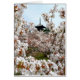 パゴ日本のダは開花のさくらんぼの木々の上に立つ。京都・仁和寺で撮影。