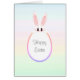 かわいいイースターバニーとイースター卵のライトパステルカラーカード。文字はパーソナライズされた誕生日。復活祭のブンニーは、再生、豊かさ、そして幸運を象徴している。