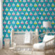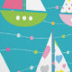 模様と青ストライプの海に花と水玉模様の点々のある帆を持つボート | ©と® Bigstock® - All Rights Reserved.