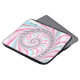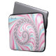 この美しいラップトップスリーブは、パステルブルー、ピンク、ホワイトの抽象芸術スパイラルフラクタルデザインを備えている。上角の黒書道フォントで名前を付け離れる。