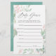 インスパイアオーガニックカスタマイズイベント仕様に迅速かつ容易に対応するように設計された赤ちゃんシャワーを推測するゲームカードの緑の赤面ピンクとミントのパステル。