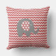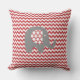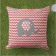 明るいシボストライプロンの赤と白耳の付いた灰色の象と赤と白屋外パターン(の模様が)ある枕。