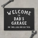 パパのガレージおもしろいブラック形式へようこそ ドアマット
