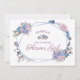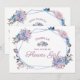 パリのチャーム ブルー&ピンク フラワーチックでシャビーなデザイン。手描きのバラ、葉、花を添えた、チャーミングで遊び心あふれるルック。ソフトなピンク、ダスティーブルー、モーブ、濃いネイビー ヴィオレットのカラーパレット。手描きの水彩花の要素、ヴィンテージ クラシック スクリプト フォント、幾何学的なテラリウム フレーム - 結婚式のフラワーガールに私と一緒になってくれる?のプロポーズカード!