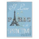 なんとパリおよび春かへの美しく、甘いオード! このコラージュ、なだめるようで青い背景のセット、エッフェル塔との単語パリの特徴の美しいヴィンテージのタイポグラフィ、文字"私は春のパリ"、および中間の美しい花およびつる植物のボーダーおよび美しく青い開花した植物のイメージ愛します。 そうかわいらしい。 あなた自身の個人的なメッセージのためのブランク。 Zazzleの私の店の芸術プリントかポスター、郵便はがきおよびパリ他の一致の項目捜して下さい。