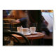 Cafe parisien, rue Rambuteau near Beaubourg - 2008 – ガラスの反対側で動いている人々が、この人間の型枠が立ち上がるように見え離れる。テーブルの上に3カップのコーヒー。グリーティングカード。